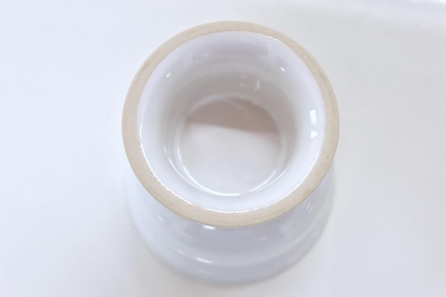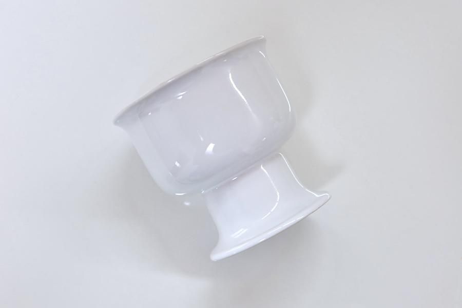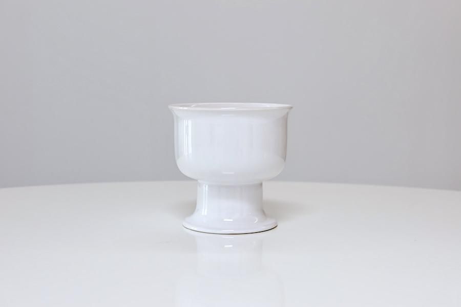 ボウルにスタンドが付いたフォルム。コーヒーやスープ、またはキャンドルホルダーやフラワーポットなど、マルチに使える器としてBODA NOVAから発売された、陶磁器製のマルチポットです。当時の箱には(こちらの品には箱は付いておりませんが)、「オーブン対応のマグ。スープやデザートなど、ホットにもコールドにも使えます。食洗機対応」と書かれています。