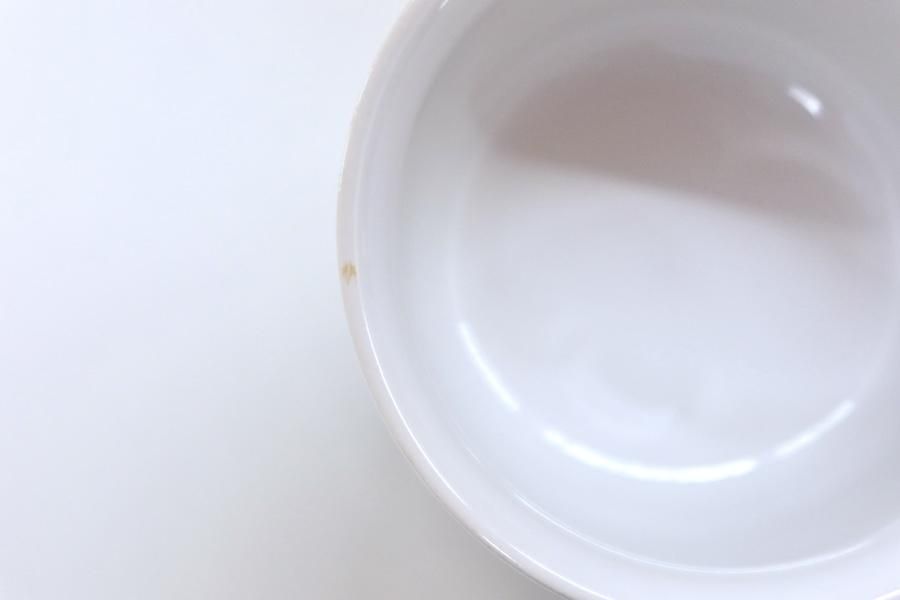 フチに色素の付着があります。ほか、スレはありますが、ヒビ、カケのないコンディションです。在庫も同様です。