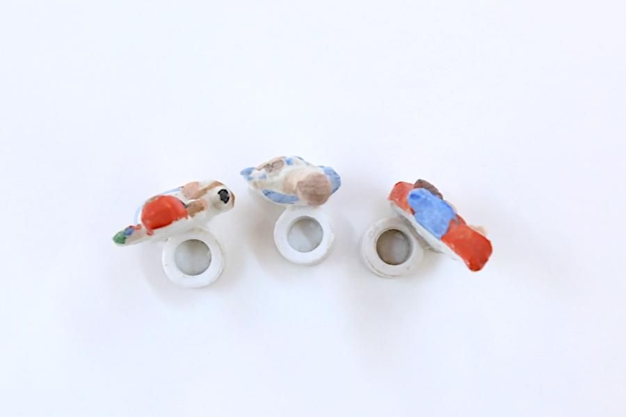 高さ4cmほどの世界一(?)小さなキャンドルホルダーです。1933年から45年までナチス・ドイツ政権下、福祉団体が慈善募金活動として貧困者への寄付を募り、その景品として作られた品です。バッジ用も作られており、こちらは、キャンドル立てになっています。型に入れて作られ、ハンドペイントされたものです。それぞれ雰囲気が異なる3体セットです。