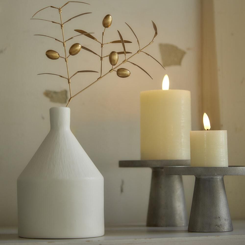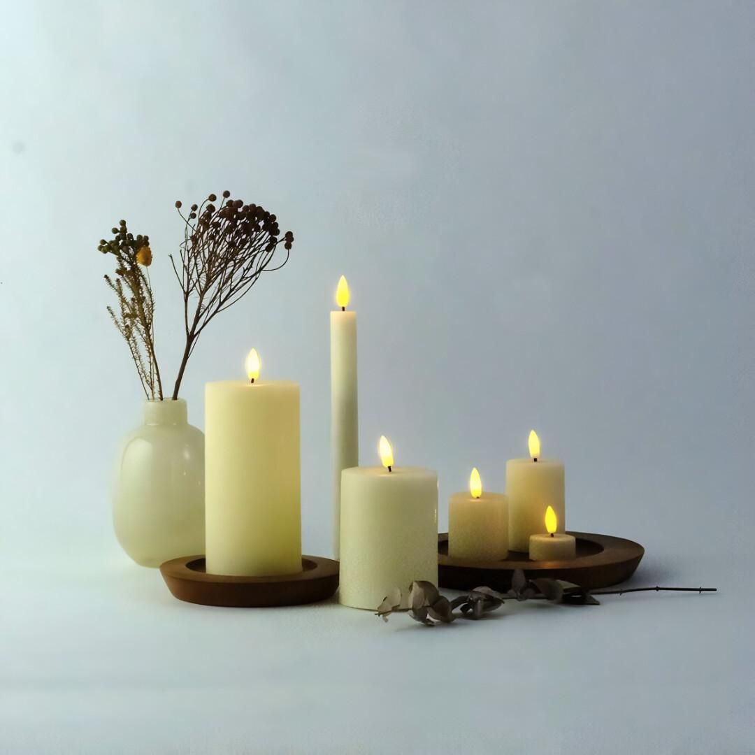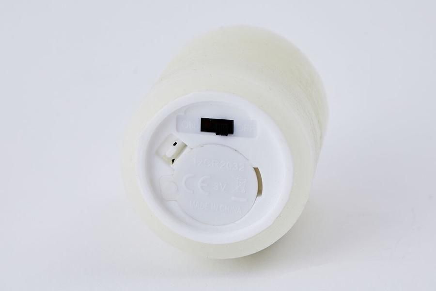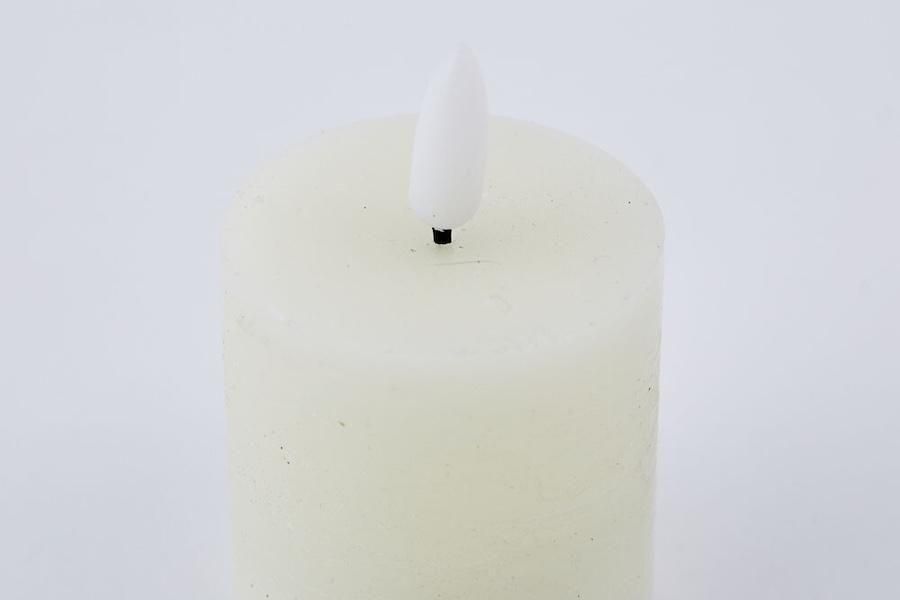 直径5cm、高さ5cm(本体のみ、炎含まず)の、電池で点灯するLEDキャンドル。画像よりオレンジに近い炎で、明るさが本物の炎のように変化するため、光のゆらぎが楽しめます。秋から冬のインテリアに、また、防災グッズとしても。