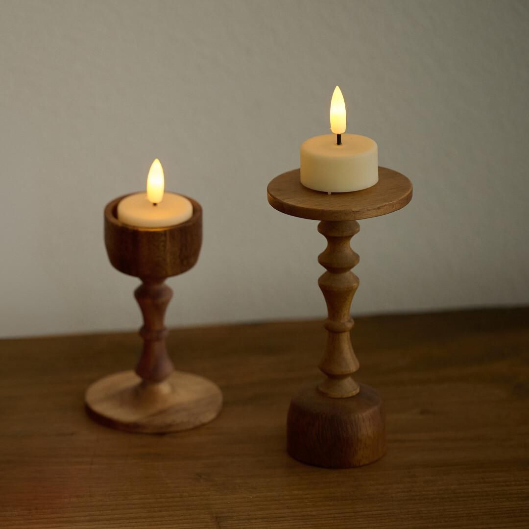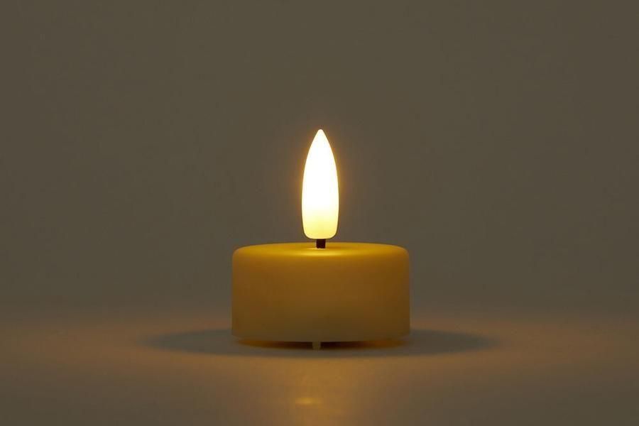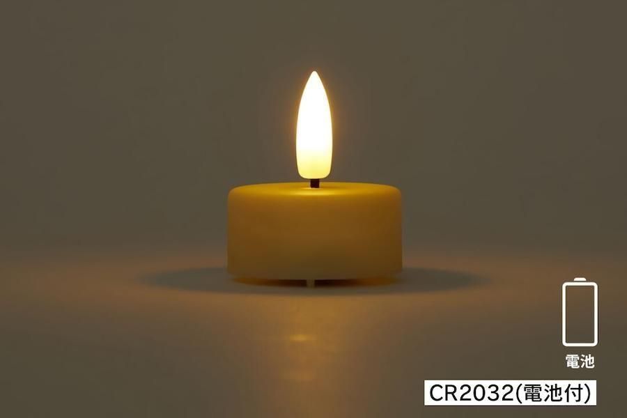直径3.7cm、高さ1.8cm(本体のみ、炎含まず)の、電池で点灯するLEDキャンドル。画像よりオレンジに近い炎で、明るさが本物の炎のように変化するため、光のゆらぎが楽しめます。秋から冬のインテリアに、また、防災グッズとしても。
