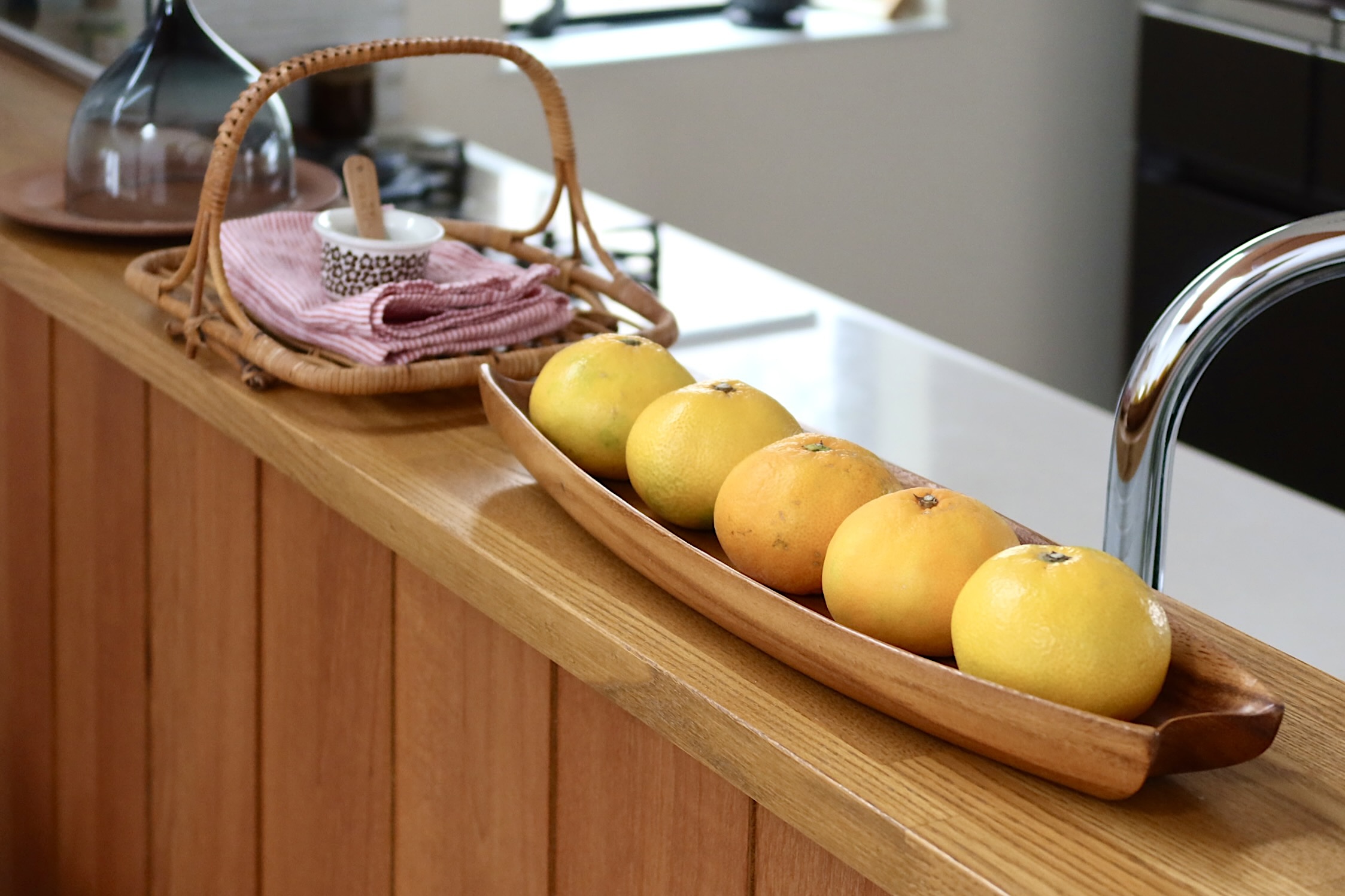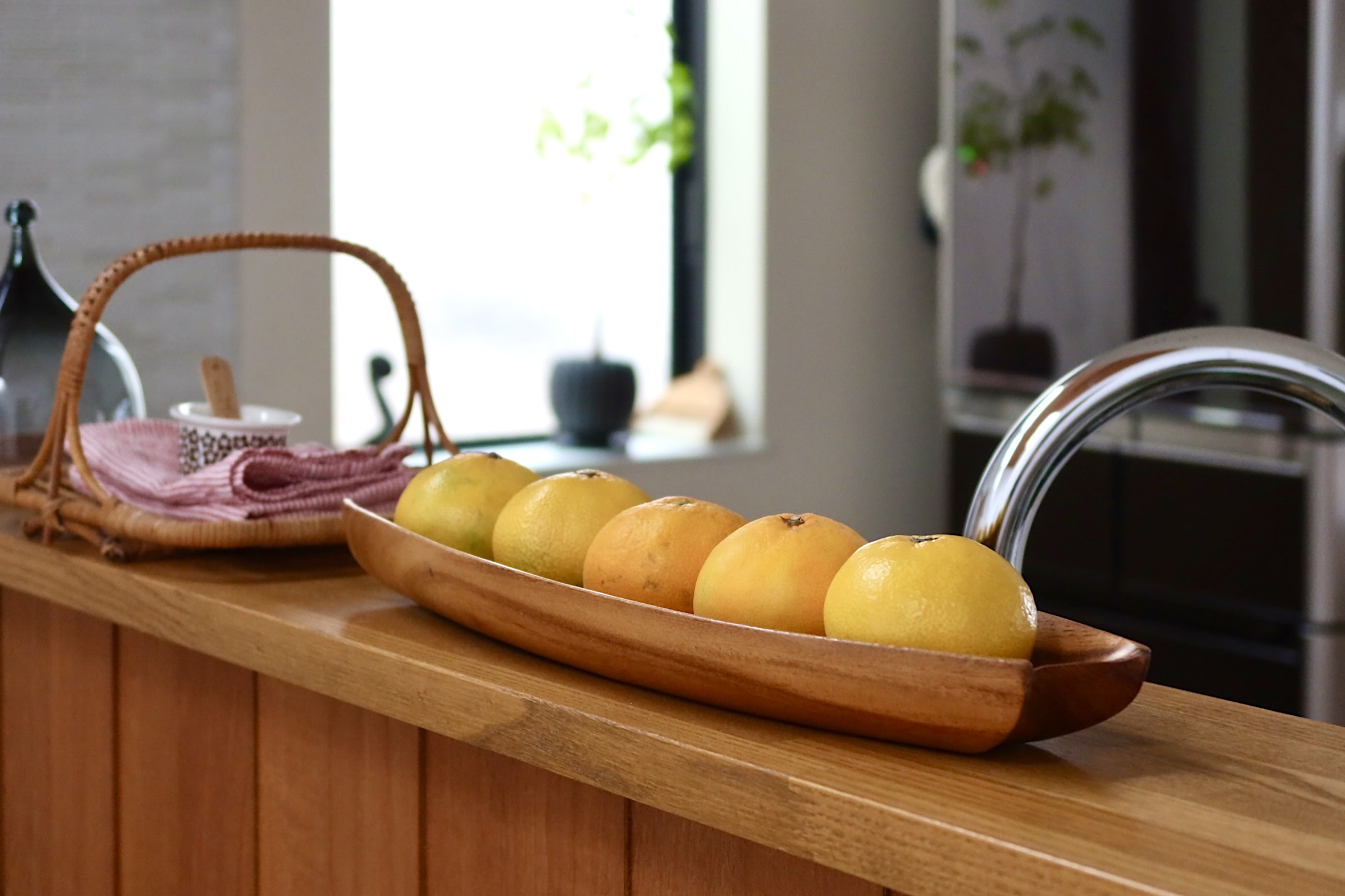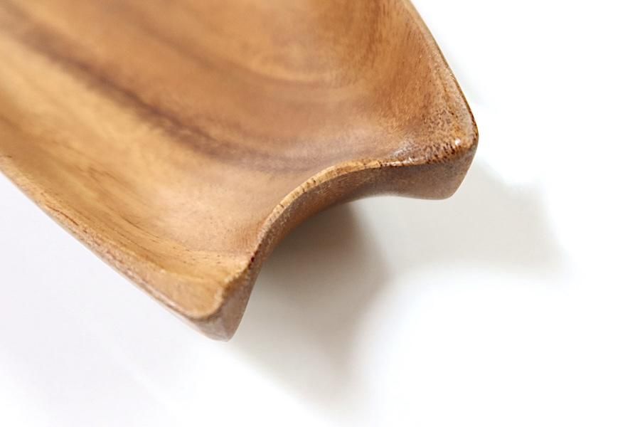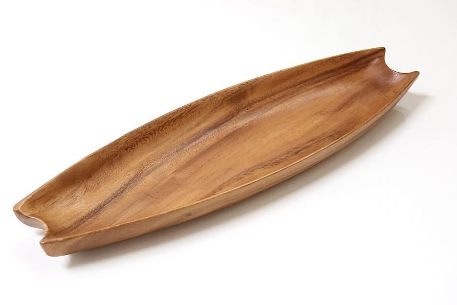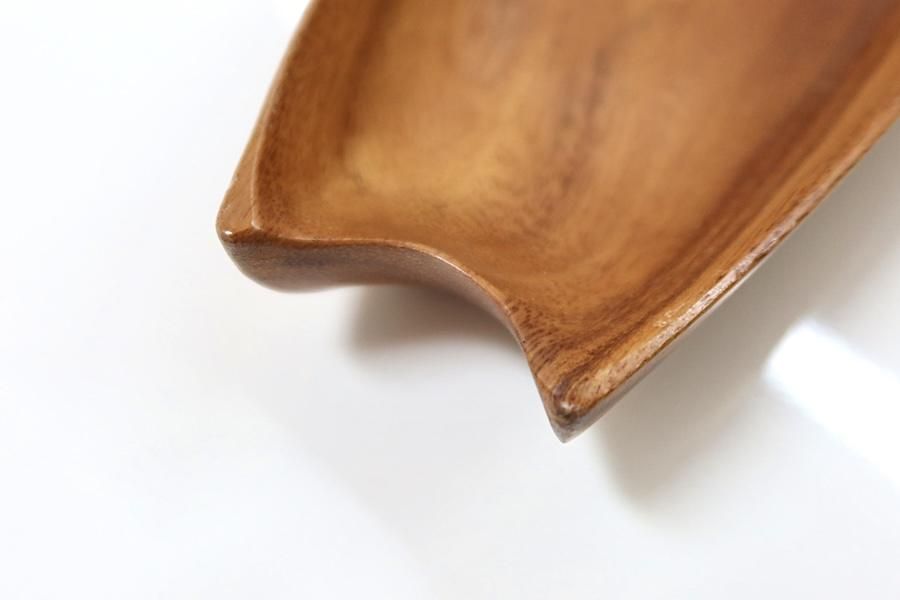 木をくり抜いて作られた、渡し船のような細長いボウル。両サイドにくびれがあり、デザインの特徴になっています。北欧でも、食器としてはもちろん、殻に入ったままのくるみや、松ぼっくりを置いて、インテリアとして親しまれてきました。