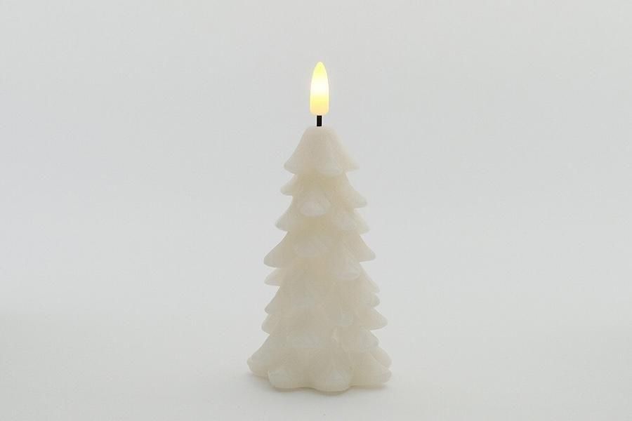 高さ15cmほど(炎含む)の、電池で点灯するLEDキャンドル。画像よりオレンジに近い炎で、明るさが本物の炎のように変化するため、光のゆらぎが楽しめます。秋から冬のインテリアに、他のLEDキャンドルと組み合わせてにぎやかに。
