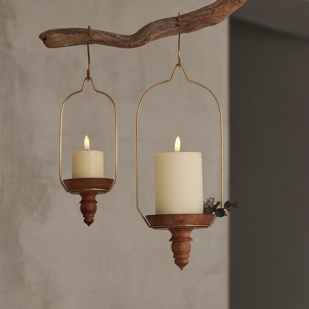 木と真鍮で作られたキャンドルホルダー/LEDキャンドル用です。