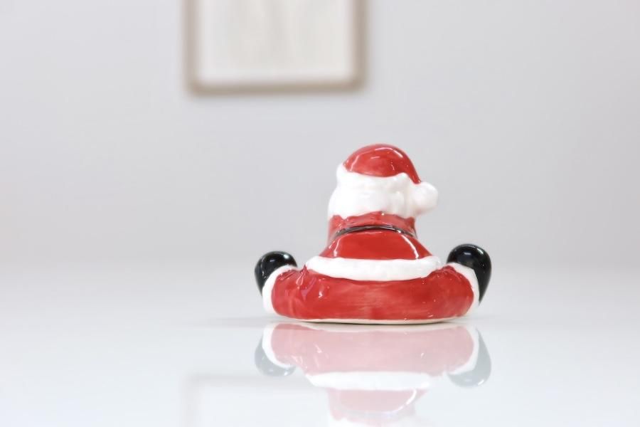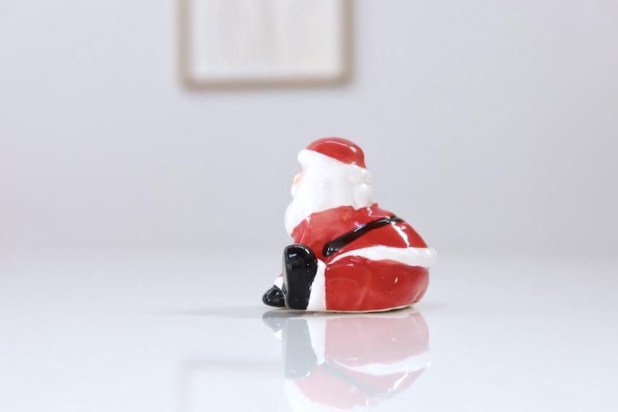 発色のいい、つやのある釉薬で、インテリアに紛れ込んでも、目立ちそうなサンタクロースです。